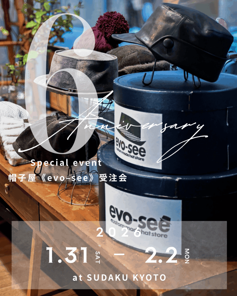 以前より交流のありました京都在住の帽子職人「evo-see」様にご参加いただき、